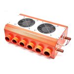 Дополнительный отопитель салона представляет собой сборку из жидкостного радиатора, диффузора и двух электрических вентиляторов питающихся от электрической сети вашего автомобиля, имеются модели как 12 так и 24 вольт. Отопитель предназначен для монтирования в салон автомобиля при недостаточном выделении тепла, штатным отопителем. Широкое применение данный отопитель получил для отопления салонов автобусов, будок вездеходов и прочей спецтехники